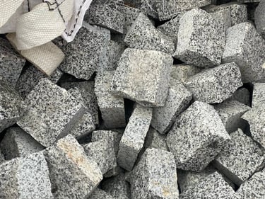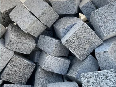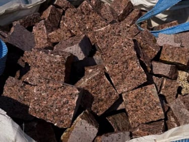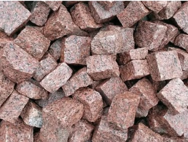 Бруківка з покостівського граніту 5х5х5см колота